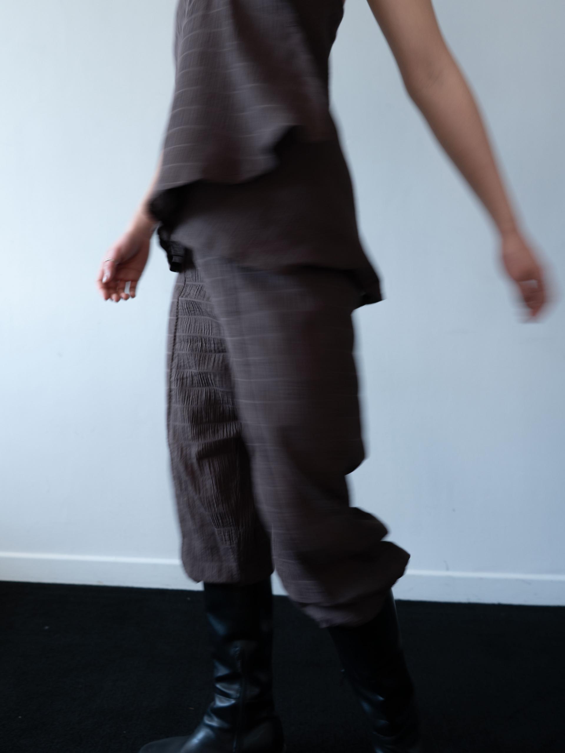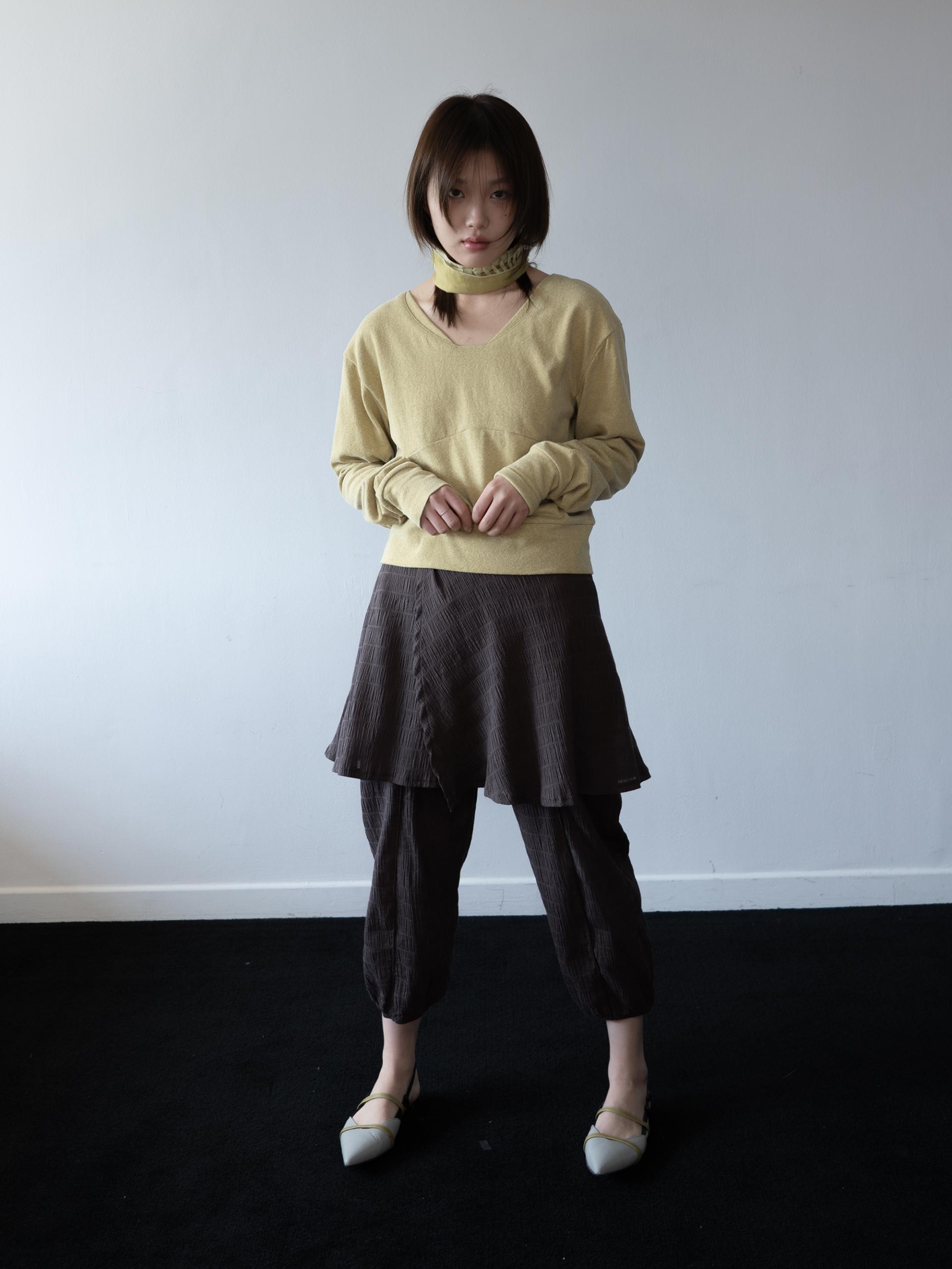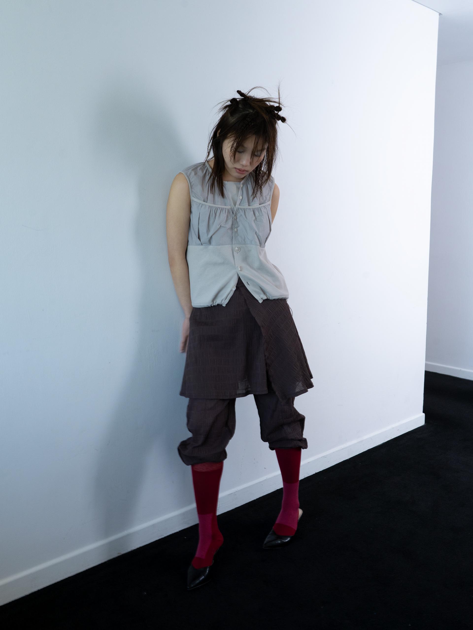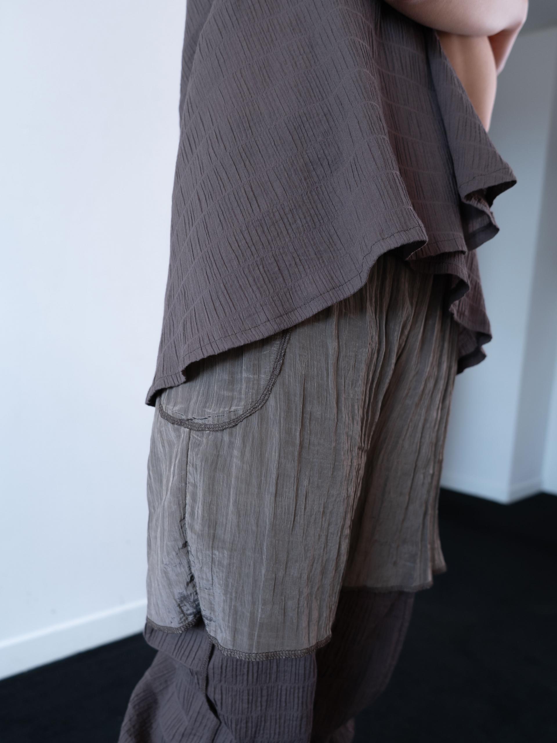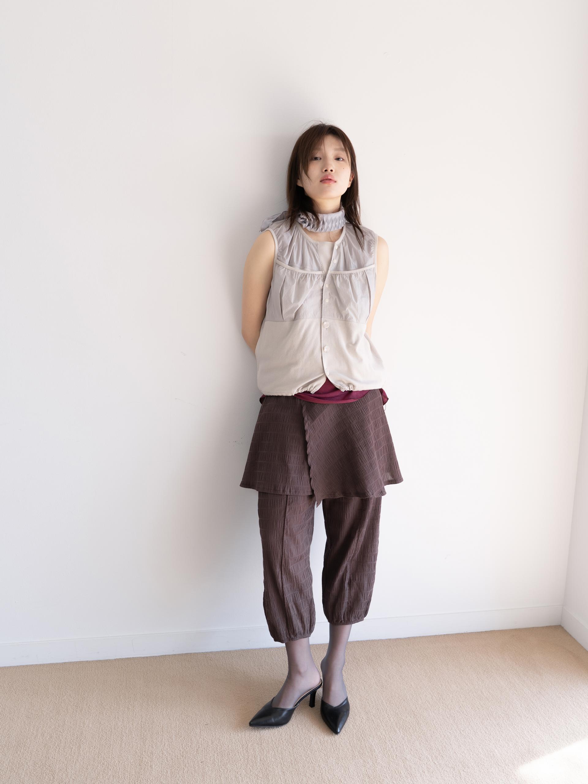랩 스커트와 팬츠로 이루어진 레이어드 아이템