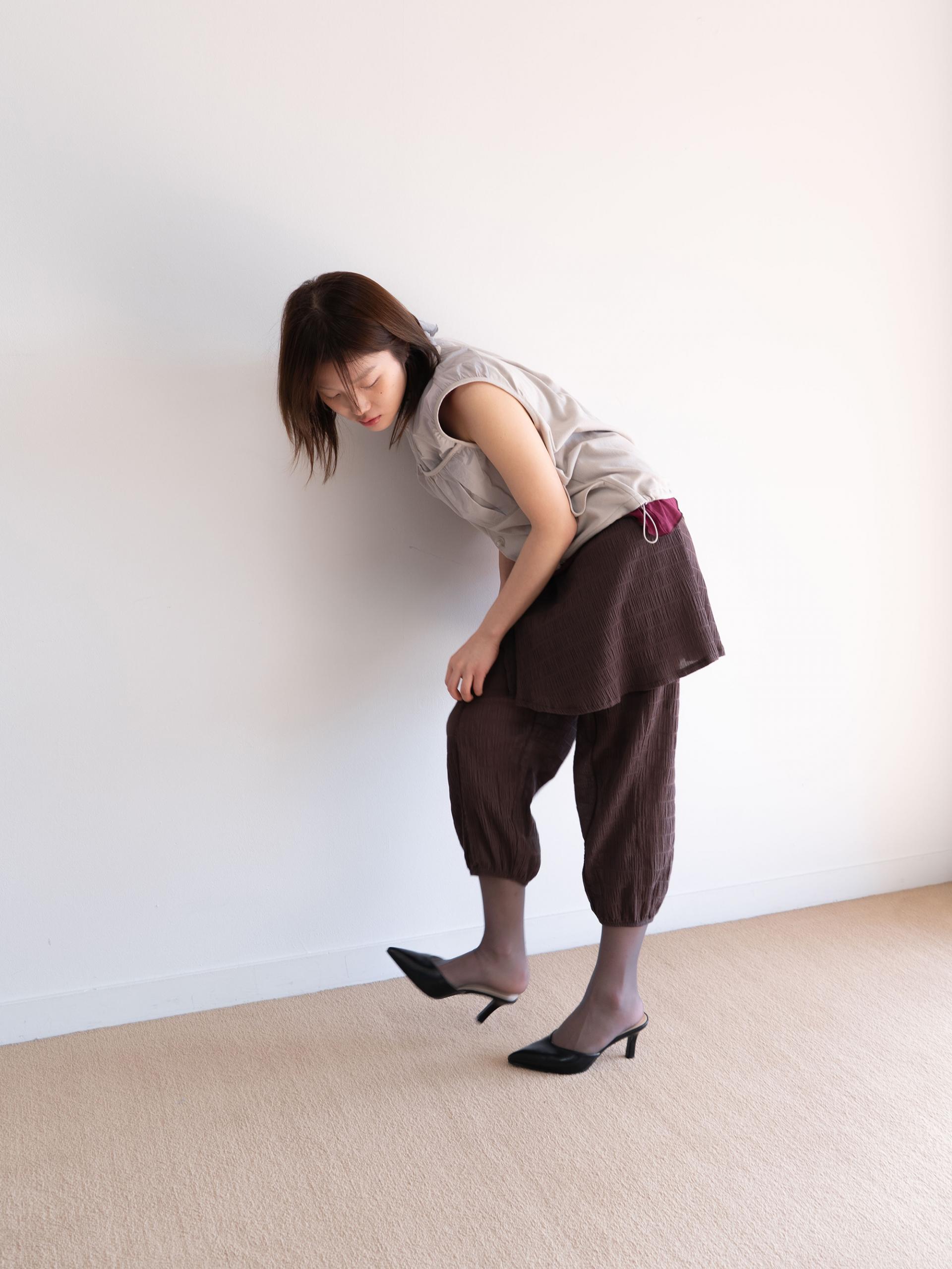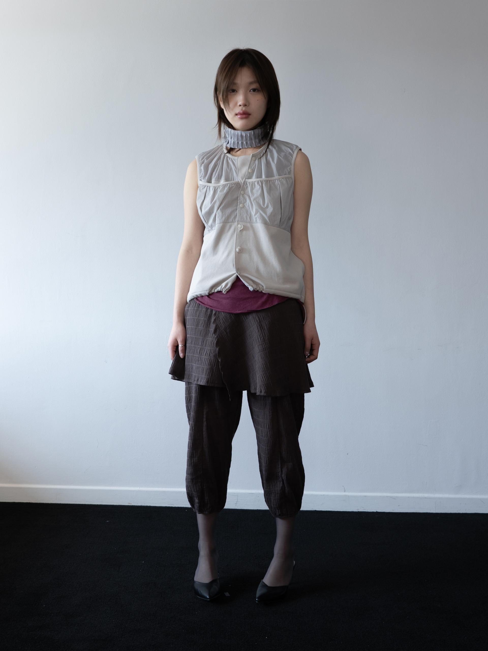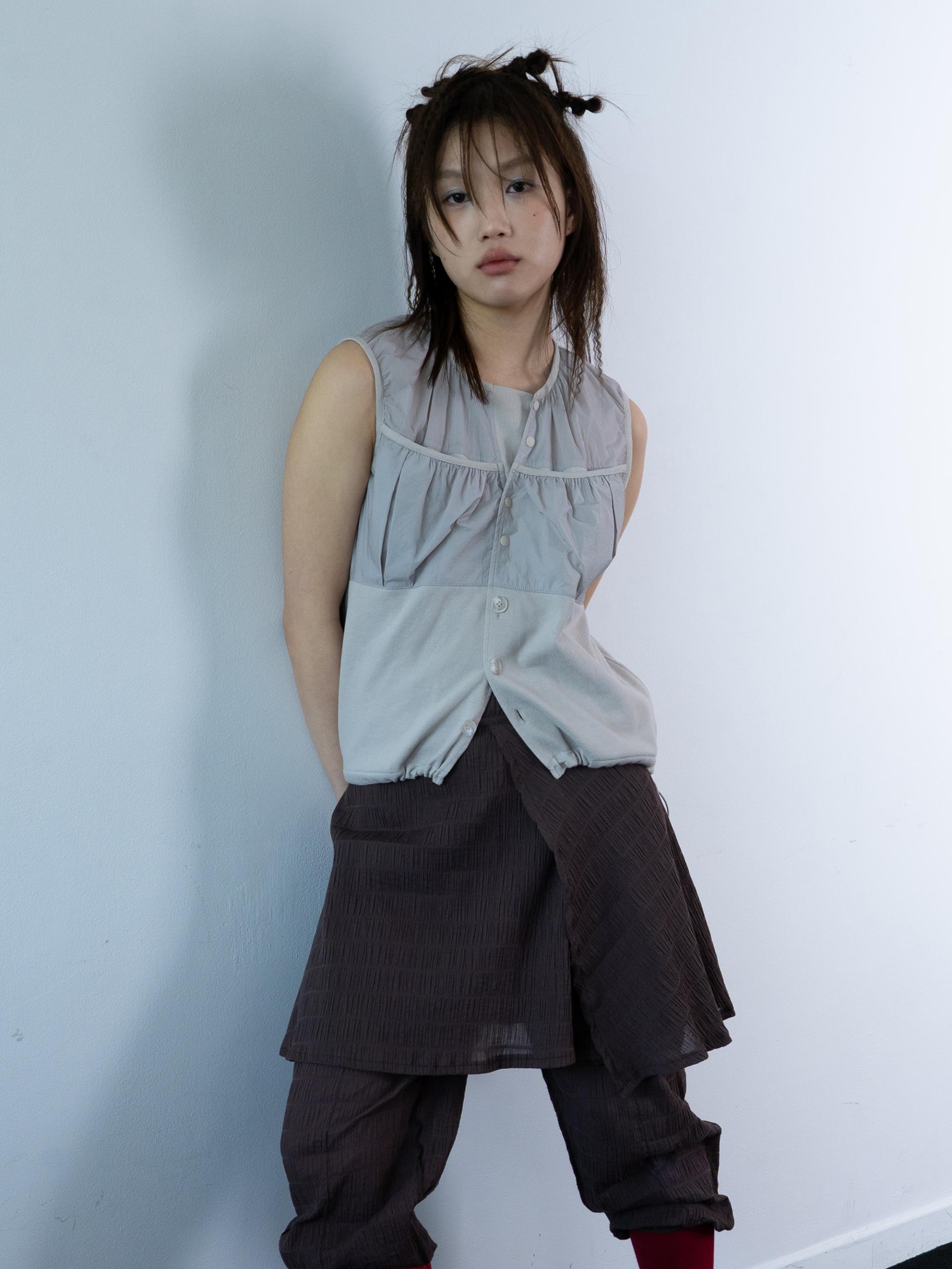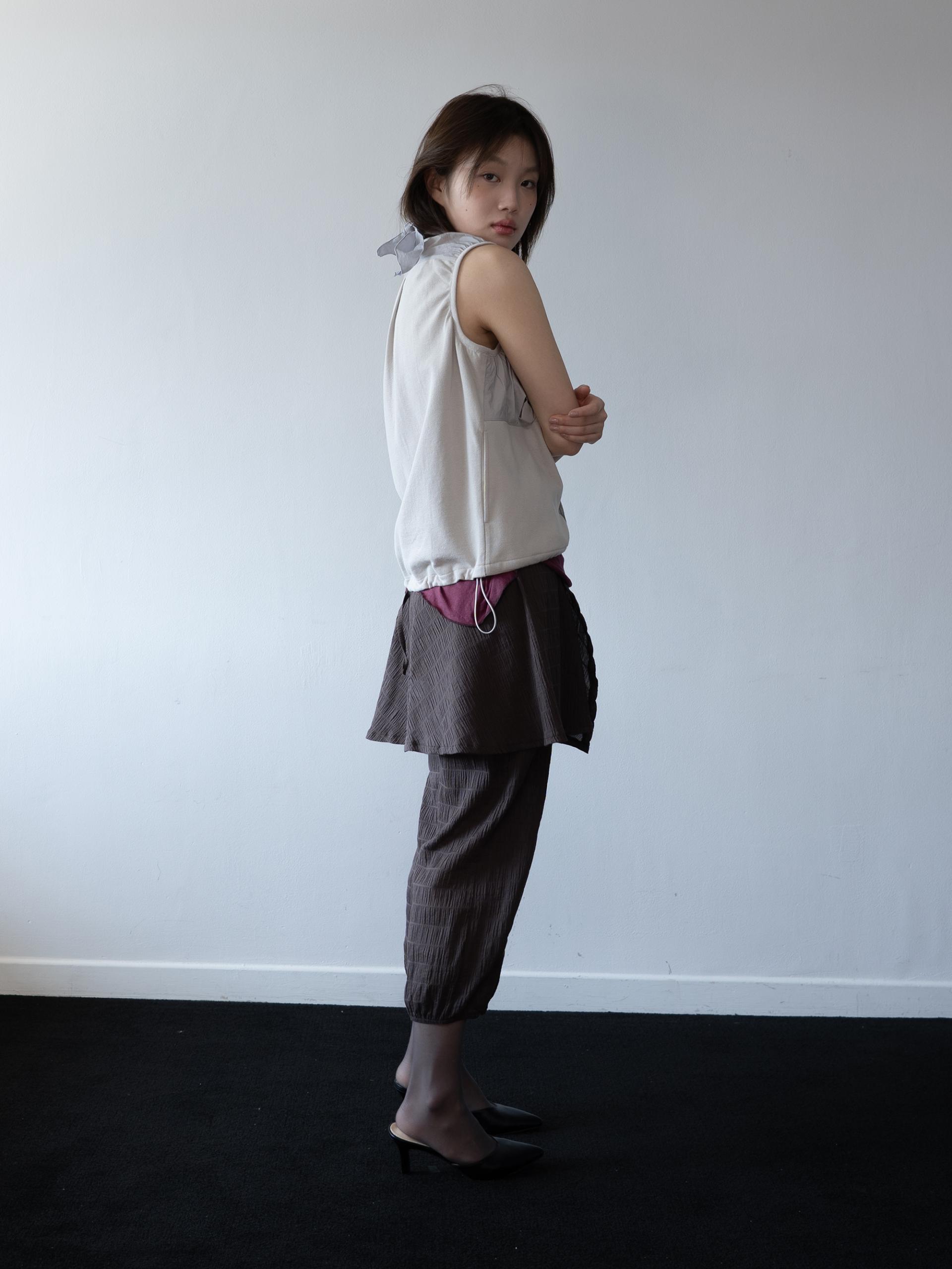 셔링과 핀턱으로 입체감을 살린 디자인