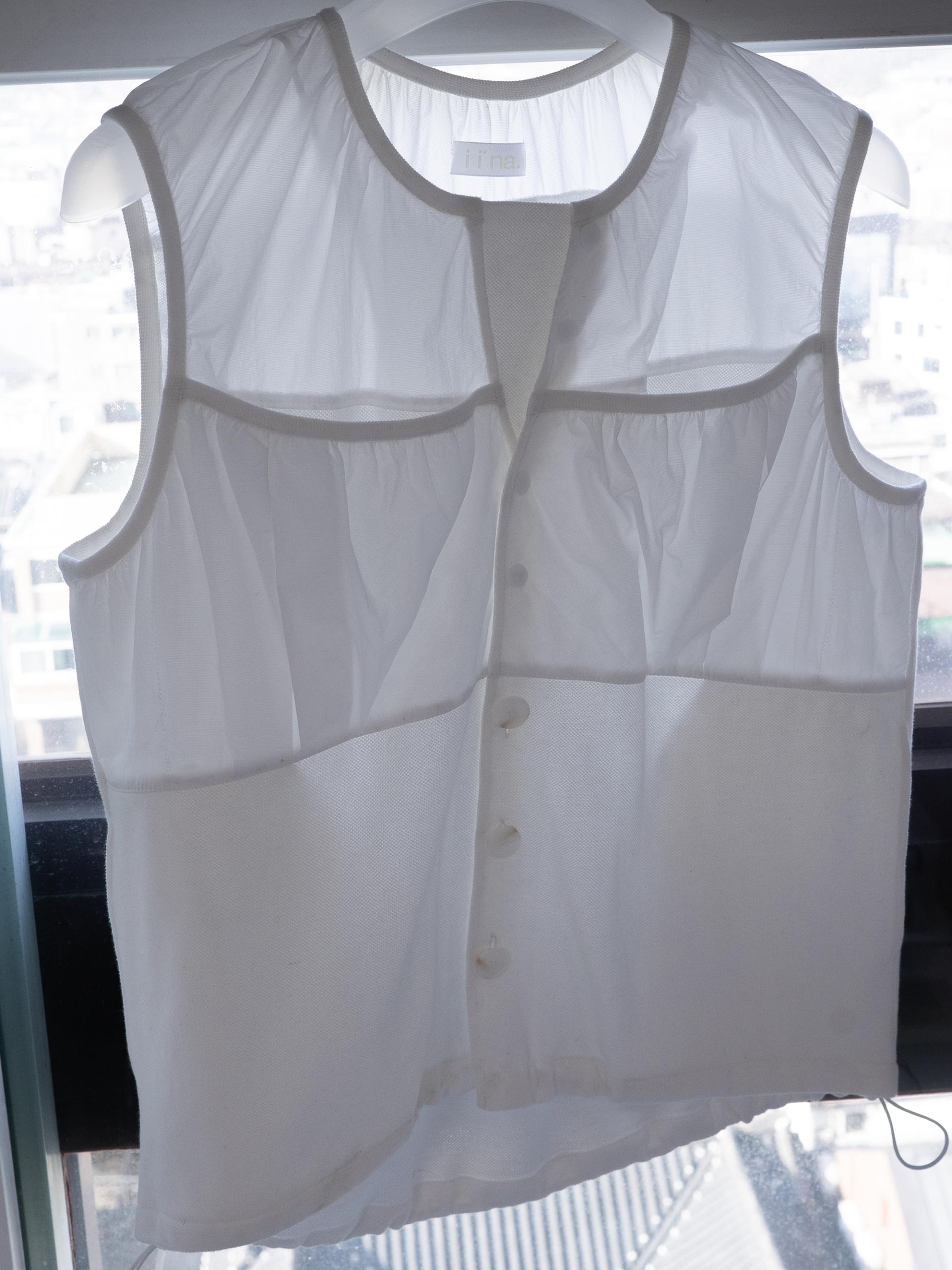 통기성이 좋은 피케 원단과 반투명의 배색 원단 사용