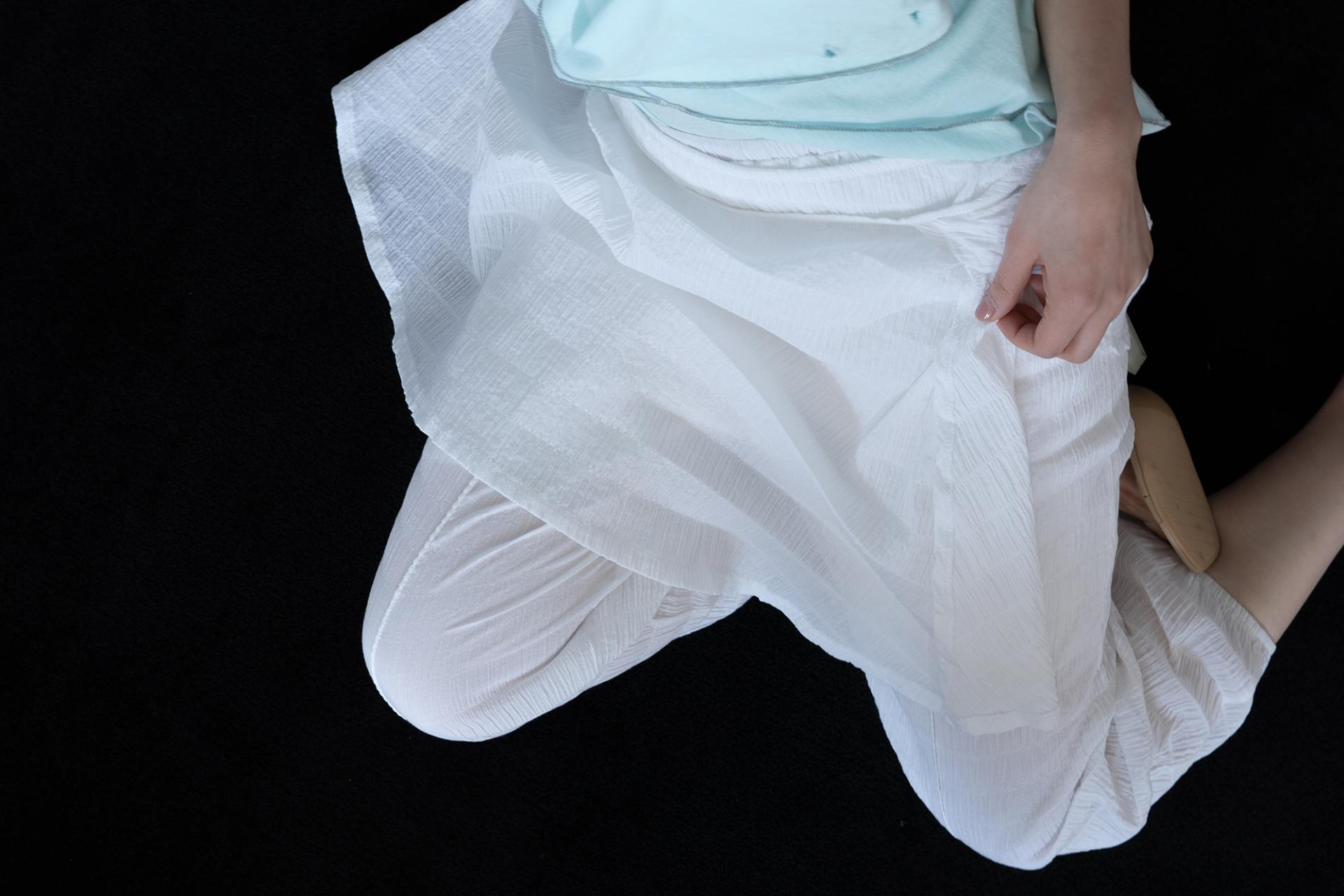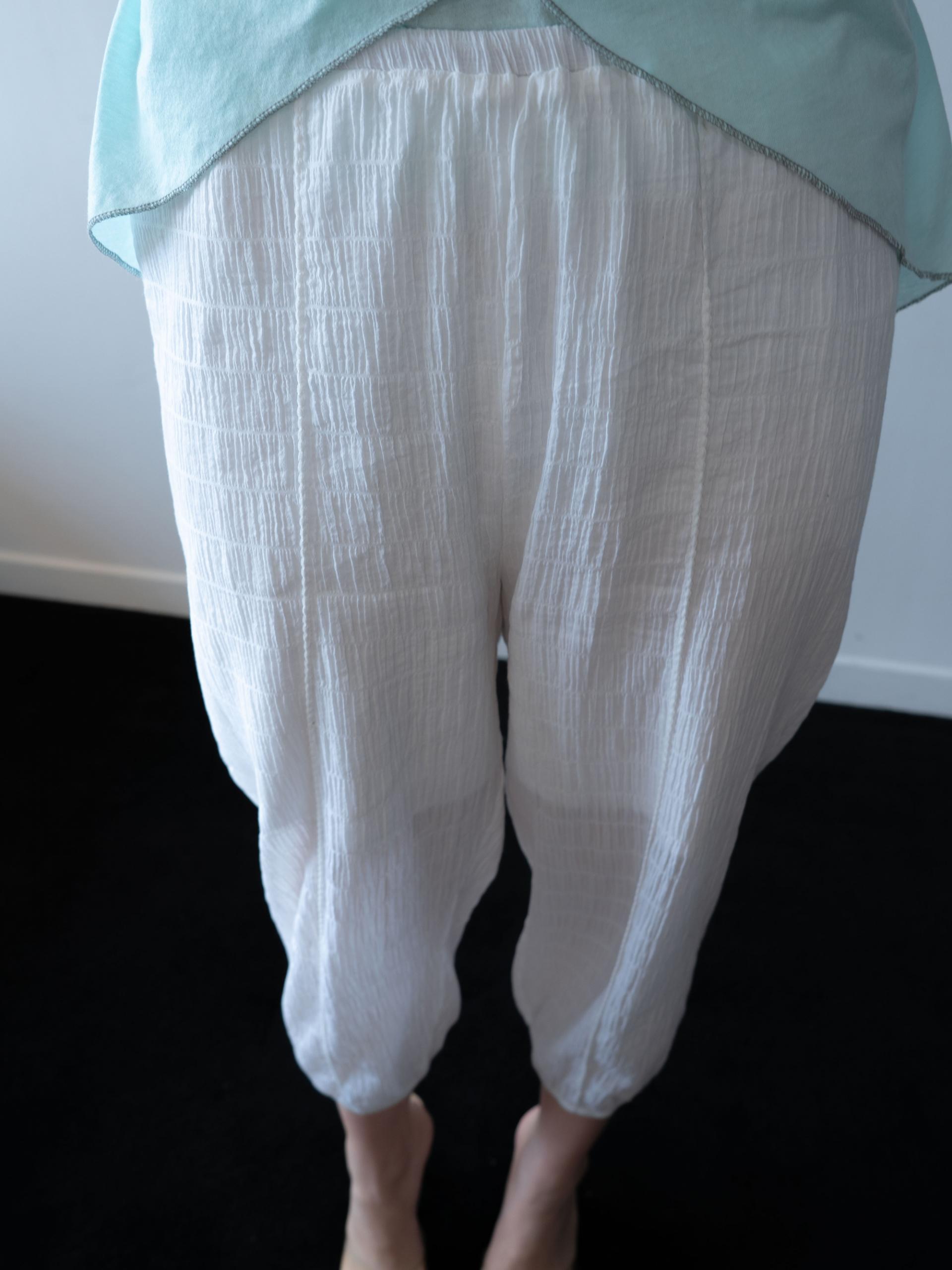 Pintuck and embroidery detailing on the pants face side