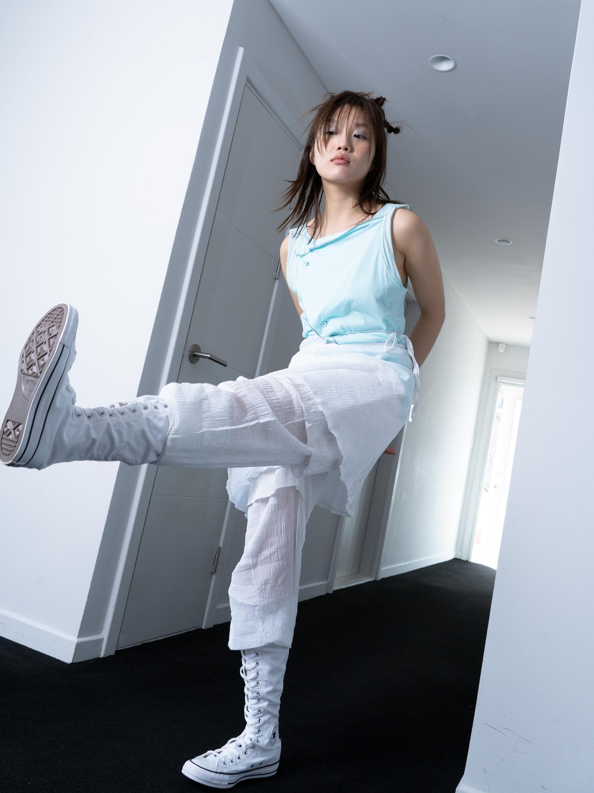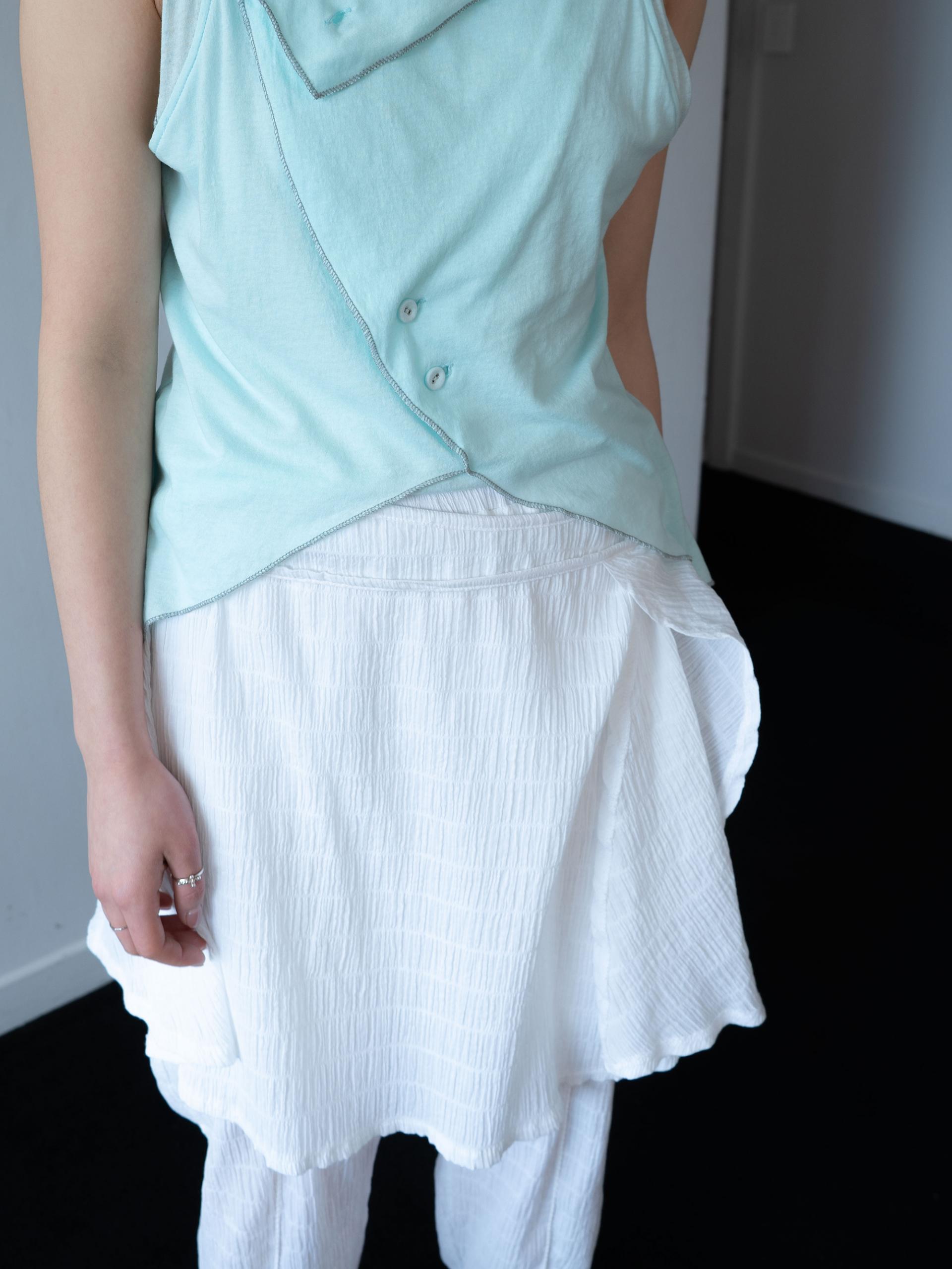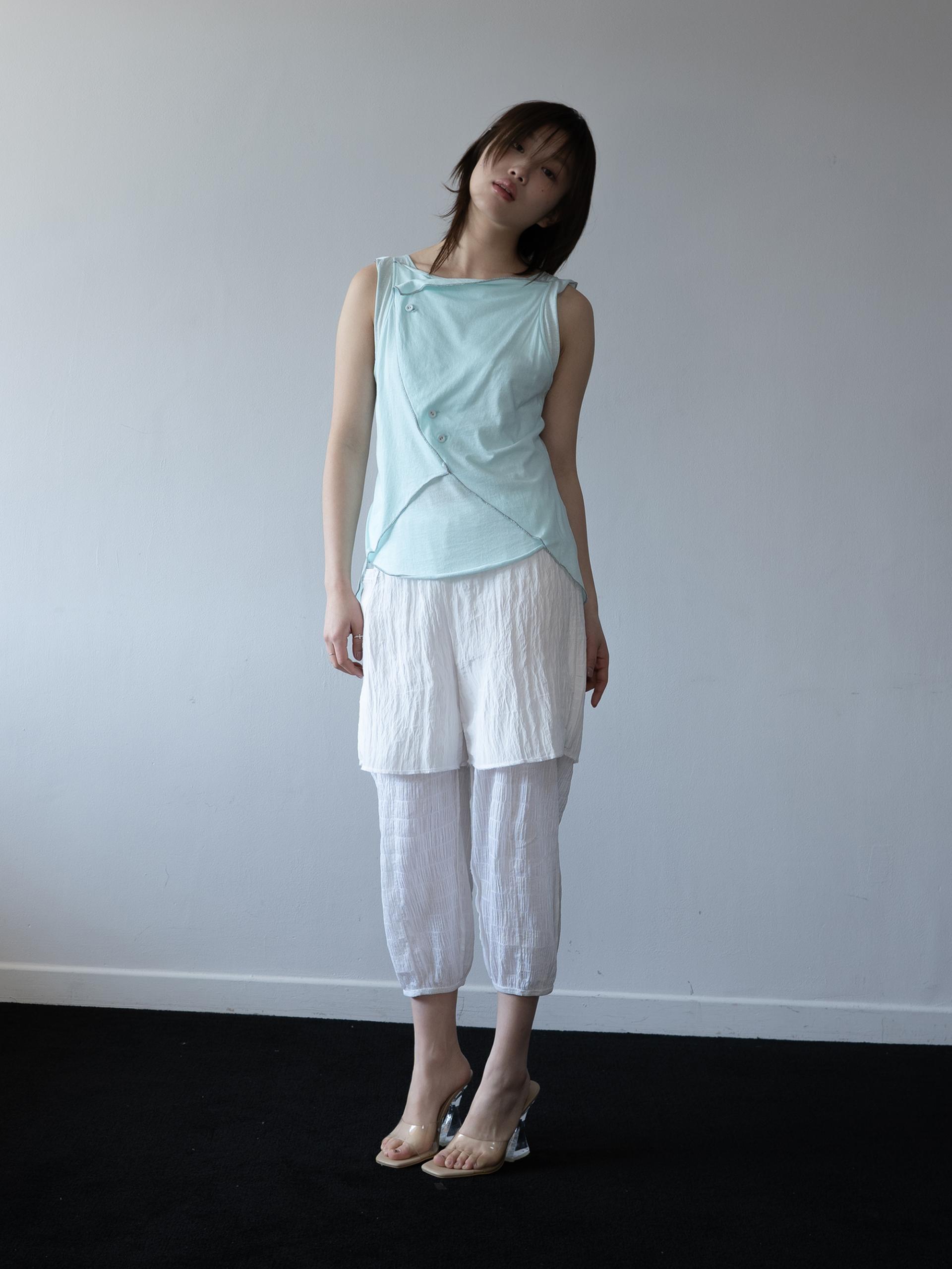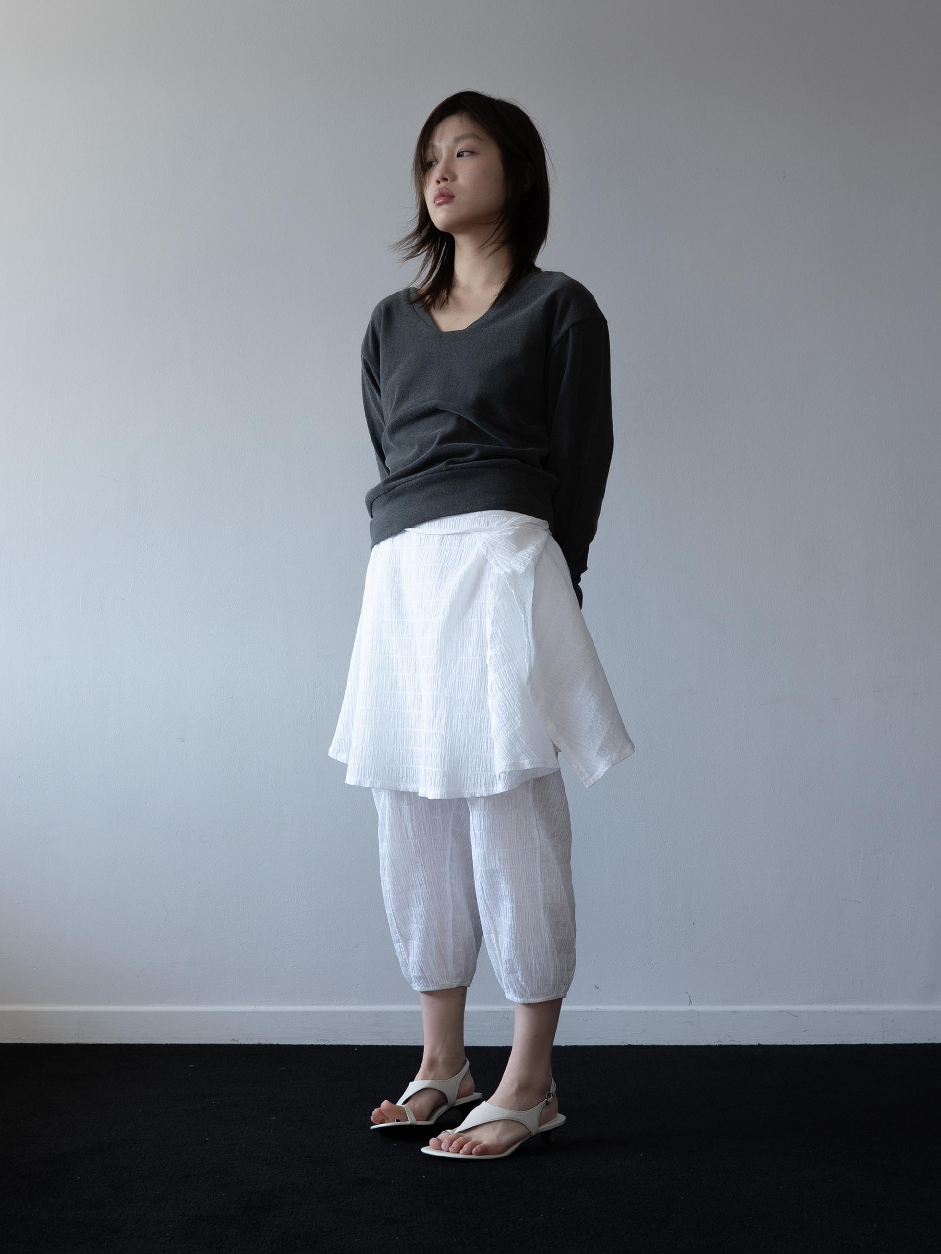 랩 스커트와 팬츠로 이루어진 레이어드 아이템