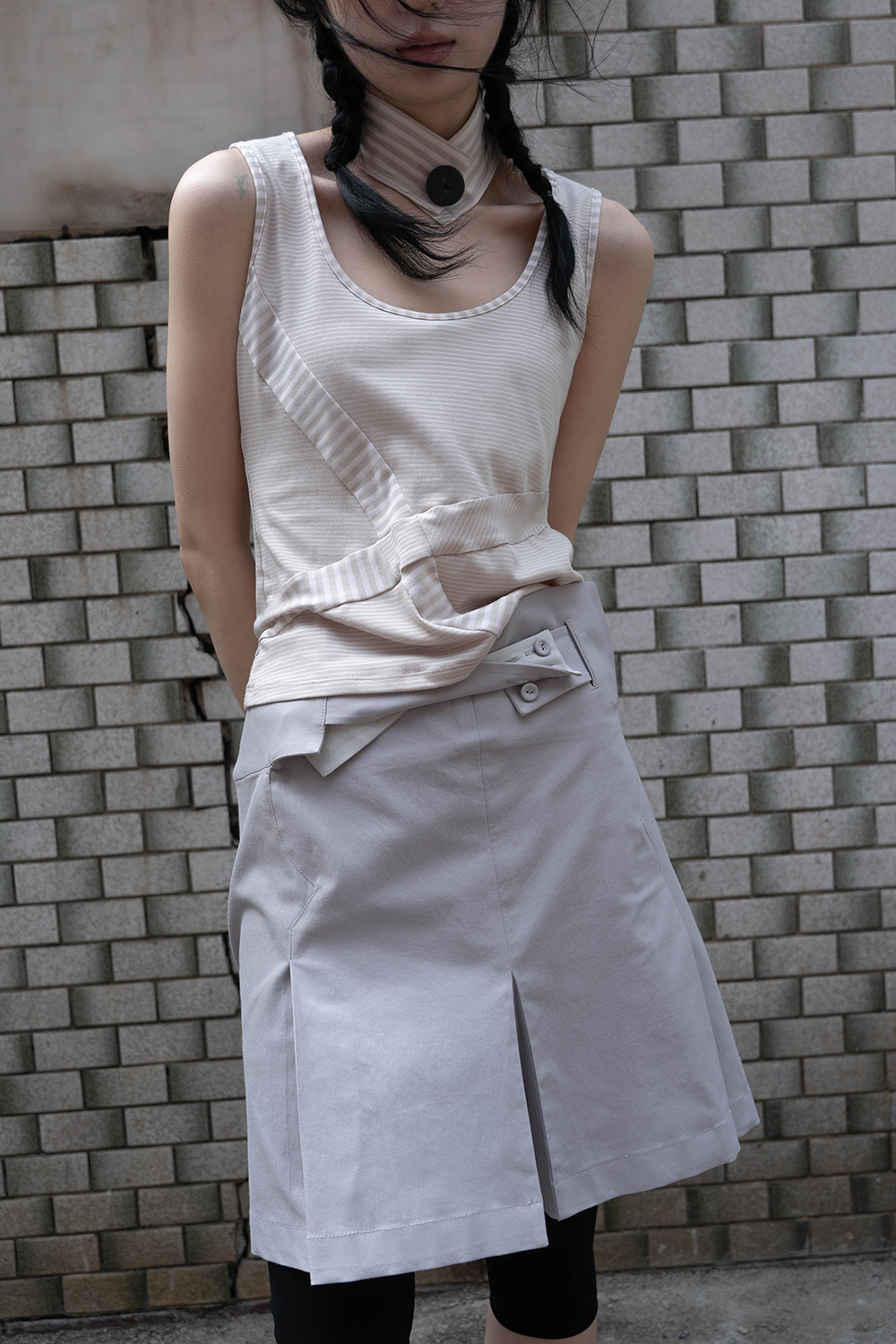 가로 방향에 은은한 셔링을 더해 신체의 곡선을 부드럽게 강조한 디자인